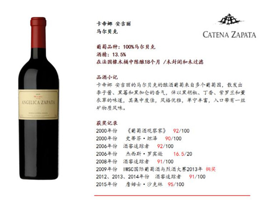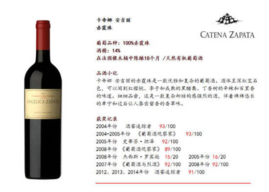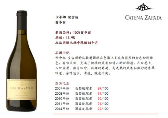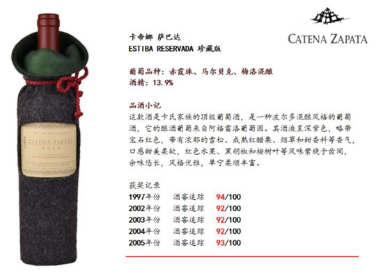 马尔贝克这样十分典型的葡萄品种,酿造出精品酒的优秀酒庄非常多。但其中,只有一家被罗伯特·帕克的《世界顶级葡萄酒及酒庄全书》一书收录!那就是来自南美洲的阿根廷酒庄—卡帝娜酒庄(Bodega Catena Zapata)。卡帝娜酒庄同时也被 Wine Spectator给予了超高评价:“阿根廷最好的酒,就出自于这里。”所以了解阿根廷,应该先看懂它!