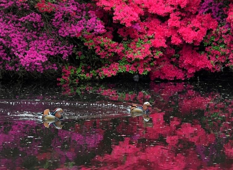 英国里士满公园杜鹃花盛放 姹紫嫣红夺目耀眼