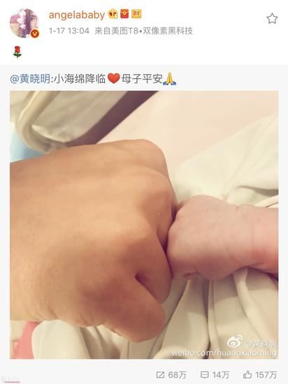 导语:黄晓明和baby迎来了他们的“小海绵”。 虽然面部未曝光,相信这位10后星二代必然是颜值不低呀~(来源:红秀中文网)