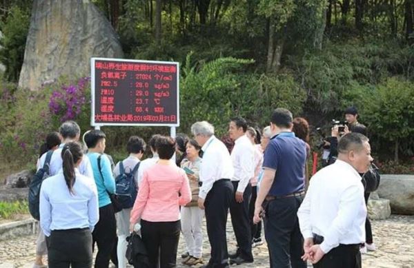 负氧离子每立方厘米达2.7万个以上!专家团队高度评价瑞山的空气质量。