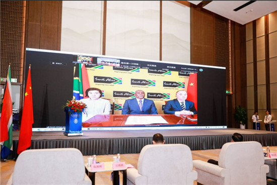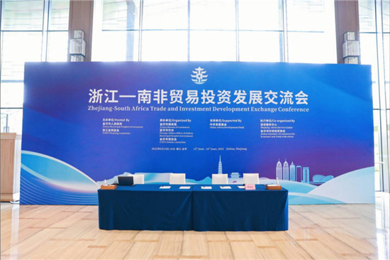 西非在线讯 6月15日,浙江—南非贸易投资发展交流会以线上线下联动形式在金华举行。会议由金华市副市长阮刚辉主持,金华市市长邢志宏,南非驻华大使谢胜文,浙江省商务厅副厅长石琪琪,浙江省外办副主任陈江风,浙江省贸促会、省国际商会副会长张善坤,中非发展基金副总裁余焯锐,南非中国商会会长徐长斌等通过线上或现场方式致辞。