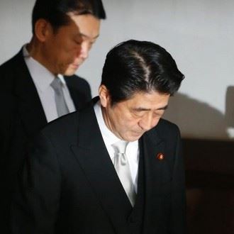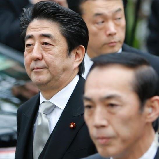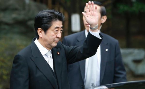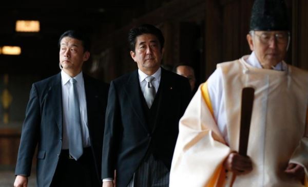 当地时间12月26日,日本东京,日本首相安倍晋三在迎来12月26日执政一周年之际,参拜靖国神社。图为安倍晋三抵达靖国神社。孙冉 摄