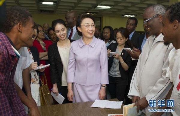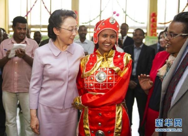 中评社香港5月6日电/5月5日,李克强夫人程虹在埃塞俄比亚总理夫人的陪同下参观亚的斯亚贝巴大学,观摩汉语授课,与学生们交流,观看学生们的中国文化才艺展示,还捐赠了书籍、计算机等物品。程虹说,你们是文化的纽带,感谢你们对中国人民的情谊。你们对中国文化的热爱感动了我,也会感动中国人民。