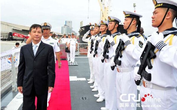 沃瑞棣大使检阅盐城舰仪仗队(李晓摄影)
