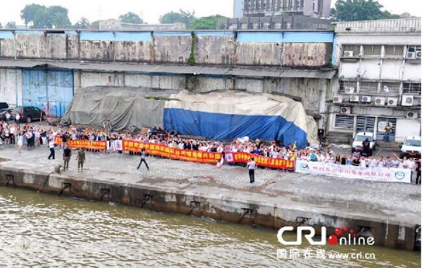 华人华侨、当地友人在码头列队欢迎(李晓摄影)