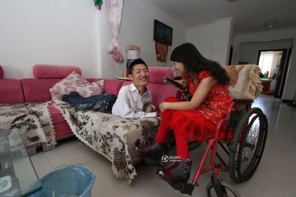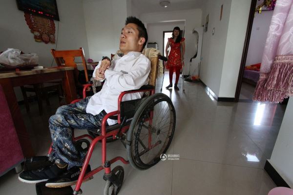 5月20日,河北廊坊,张磊在家活动时坐轮椅,妻子雪儿则是拄拐。张磊,今年28岁,廊坊人,十个月大时开始患病四肢肌肉逐渐出现萎缩。庞雪儿,30岁,甘肃庆阳人,2009年一场车祸导致脊椎受损,肇事司机逃逸。原本相距1100多公里的两个陌生人,因为共同的音乐爱好有了交集。