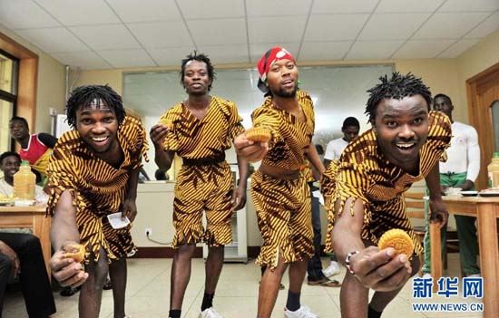 9月6日,河北吴桥杂技艺术学校的非洲留学生在餐厅品尝月饼。在中秋节来临之际,河北吴桥杂技艺术学校为来自苏丹、肯尼亚、赞比亚等非洲国家的留学生准备了月饼,并给他们讲解中秋节的来历,让他们更好地了解中国的传统节日。新华社记者牟宇 摄