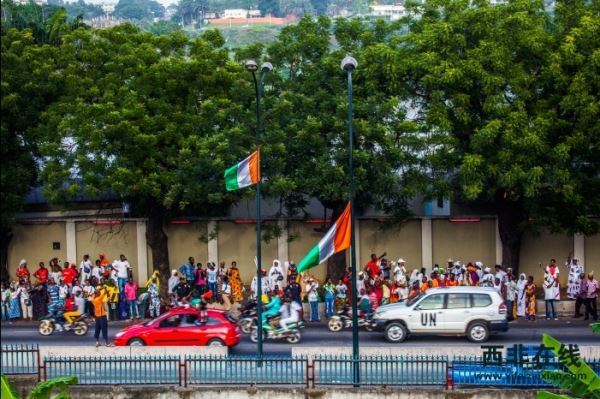 科特迪瓦总统阿拉萨内•瓦塔拉归来的车队