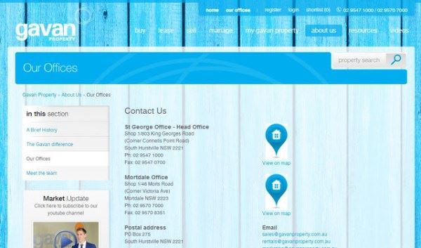 郭文贵展示的第九套房产图上有英文水印“Gavan Property”字样,经查,Gavan Property是一家澳大利亚房地产中介公司,中文名称为加文物业公司,位于澳大利亚新南威尔士州悉尼南部的郊区赫斯特维尔乔治国王路1/803,主要从事房屋的买卖租赁等业务。其网站主页如图: