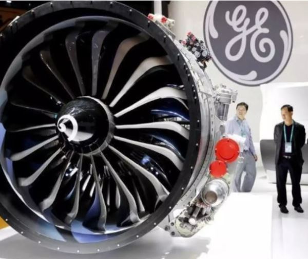△首届进博会上,美国通用电气公司展出的飞机发动机模型。