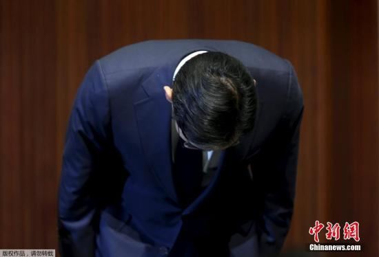 当地时间2015年6月23日,韩国首尔,三星电子副会长李在F在位于首尔瑞草区的公司总部召开记者会,就三星首尔医院管理不力造成中东呼吸综合征(MERS)疫情扩散向国民道歉。