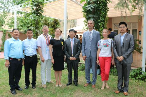 乌克兰驻华大使奥列格焦明接受记者采访时合影留念