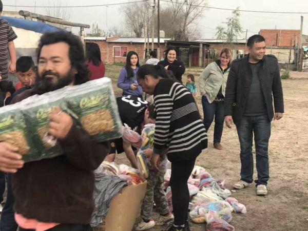 阿根廷华通网8月23日电(记者 陈国平) 下午5点,《铂烽一心慈善基金》常务副主席陈玉辉受慈善基金首席林海宁主席委托,前往布省Quilmes区,捐赠了一批物资给附近难民棚的孩子们。