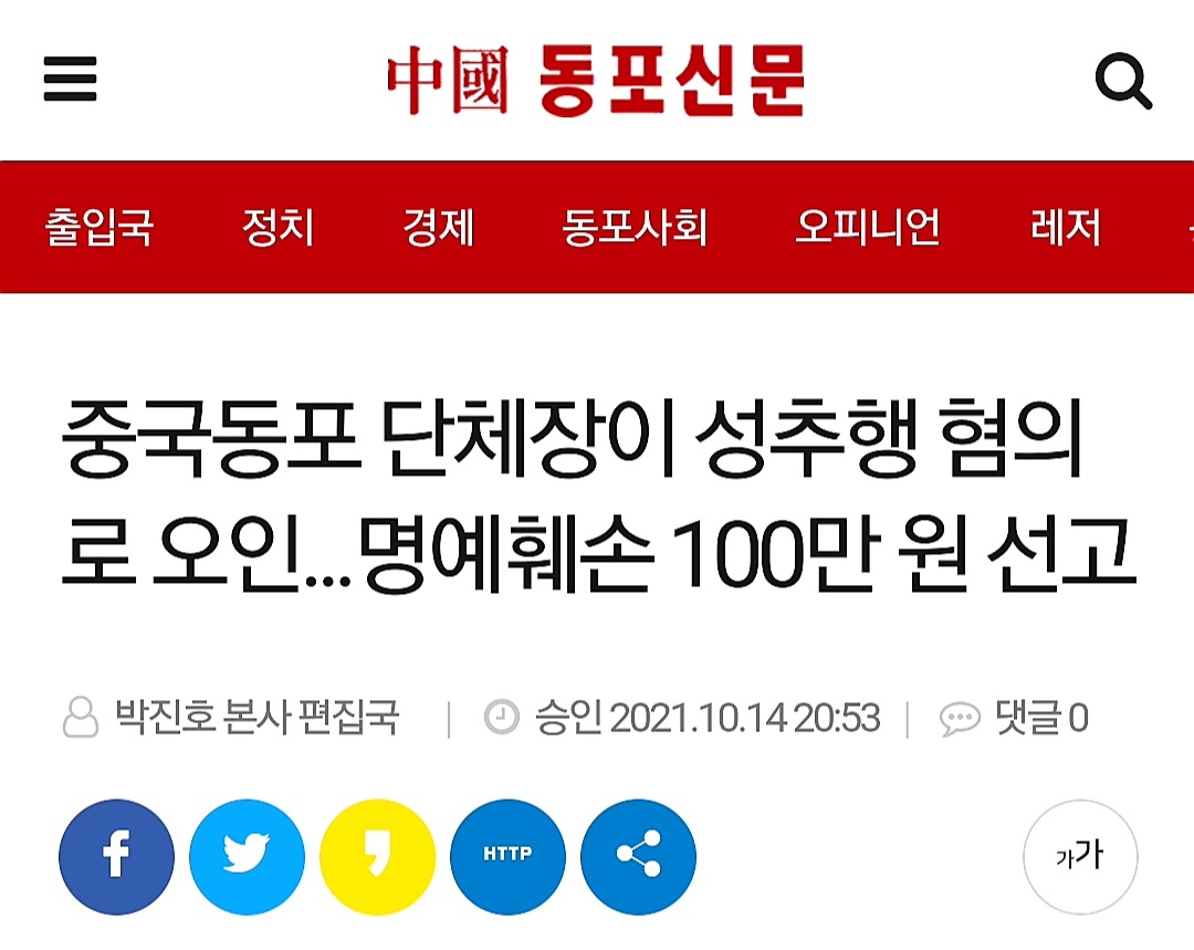 据韩国媒体《中国同胞新闻》报道,2021年10月13日,部分在韩中国同胞代表们应原告方的特别邀请,出席和聆听了韩国首尔南部地方法院,对某在韩国的归韩中国同胞会长朴某恶意损毁和诽谤他人的名誉损毁罪名成立并处以罚金100万韩元。事实证明,正义有时虽然会迟到,但永远不会缺席,多行不义必自毙。