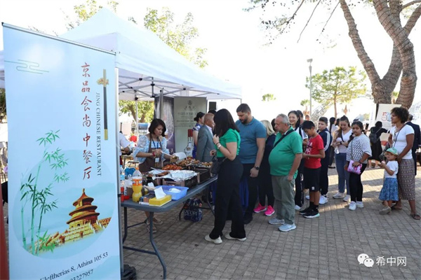 雅典京品食尚中餐厅为现场提供的北京烤鸭、春卷、咕咾肉等丰富的中国特色美食让中国美食展区成为全场焦点,现场排起长队,供不应求,很多希腊民众还用中文“好吃”来回应中国美食代表团。生活在希腊当地的华侨华人也纷纷表示,在异国他乡品尝到“中国味道”,就像回到了故乡一样。