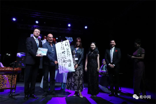 演出现场,还播放了中秋节庆的视频短片,主持人邀请现场观众一同品尝月饼,并与希腊和海外友人们共度中国的传统佳节。