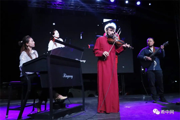 中国美食文旅团的雅婷、杨震 与斯特拉提斯共同弹奏《比雷埃夫斯港的孩子们》