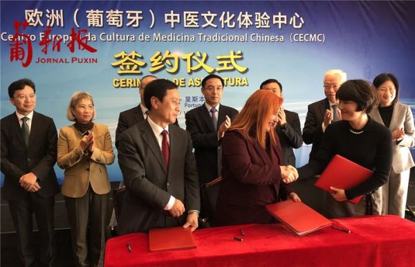 12月6日,在中国国家主席习近平成功访问葡萄牙之际,欧洲(葡萄牙)中医文化体验中心签约仪式在里斯本举行,该项目由江中集团、江西中医药大学、中国-葡萄牙中医中心三方共建,旨在展示中国江西省悠久的传统中医药文化特色,突出江西省在响应国家“一带一路”建设号召下对外推广中医的成就,以葡萄牙为平台,向整个欧洲及葡语国家提供专业的、高水平的中医培训,提供优质的中医服务。