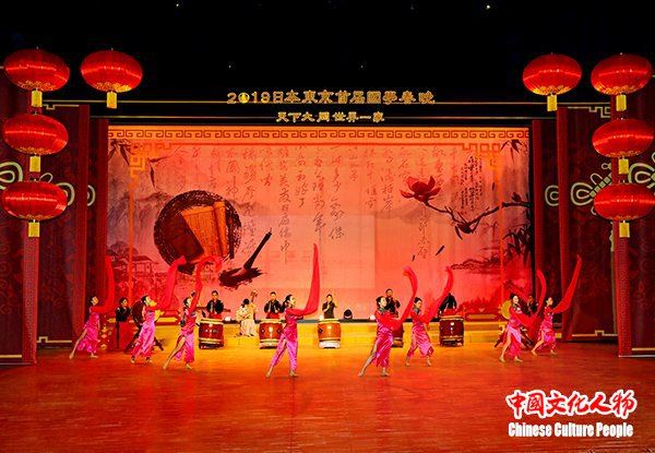 2019日本东京首届国学春晚文艺演出在《鼓韵华章》中拉开序幕。鼓在中华传统文化中占有极重要的位置,《周易》有“鼓之舞之以尽神”,早在商周时代不仅出现了原始的鼓舞形式,而且鼓与舞相结合,已成为鼓舞、激励人们团结奋进的精神力量