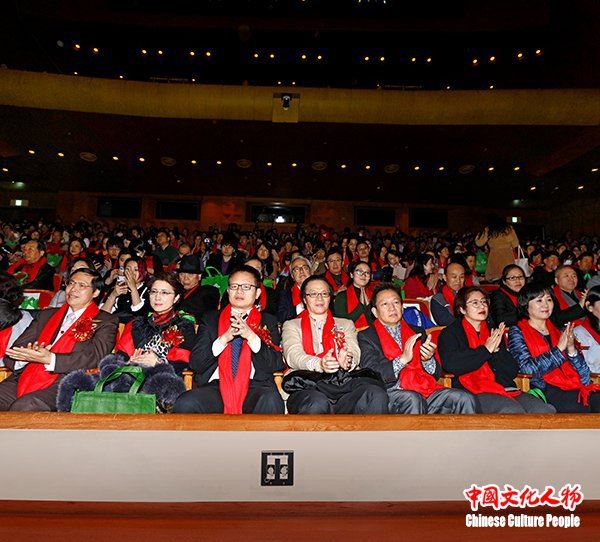 中华人民共和国驻日本国大使馆总领事詹孔朝,国侨办东京华助中心主任、全日本华人华侨联合会名誉会长颜安,CCTV大富频道社长张丽玲等领导及中日两国嘉宾观看晚会,祝贺国学春晚成功举办