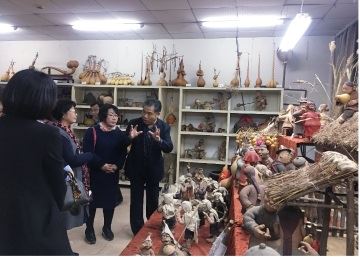 On October 25, 2018, a delegation of experts and scholars from Korea visited the Gourd Culture Museum. Hu Lu showed the Korean friends his collections including special-shaped gourds, knotted gourds, long-stemmed gourds, egg-gourds, as well as chess pieces and instruments made of gourds. In front of a group of clay sculptures titled “Life Accompanied by Gourds”, Hu Lu introduced in detail the gourd elements of folk culture. At different stages of life, a person is accompanied by different customs of the gourd culture, thus reflecting the unique status of a gourd in the folk culture. The Korean friends were greatly fascinated. At the sight of a scene showing a Korean custom of trampling on gourds in a Kor
