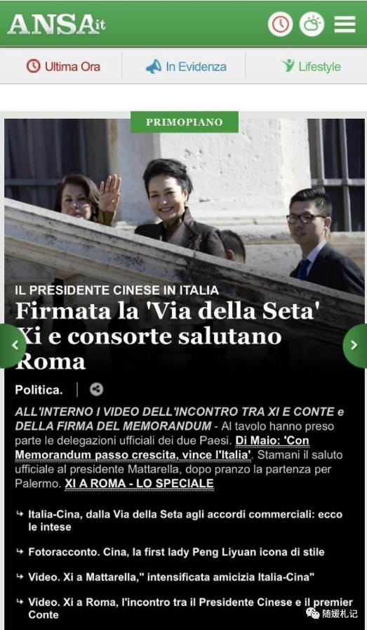 《赫芬顿邮报》意大利语版,提到了她喜欢穿“中国设计”“中国制造”的衣服。