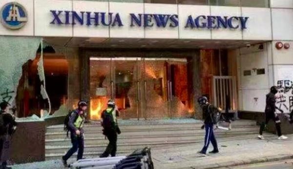 香港反修例風波以來,新聞機構屢遭亂港暴徒針對攻擊。位於灣仔皇后大道東的《新華社》亞太總分社,11月2日遭黑衣蒙面狂徒暴力衝擊,大門、外牆及安保設施皆被打爛,玻璃碎裂散滿行人路,外牆被噴上侮辱詞語,門口被紅油漆彈污損,大堂更被暴徒縱火焚燒,一度火光熊熊,濃煙沖天。