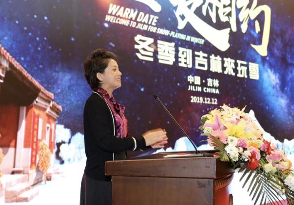 吉林省文化和旅游厅厅长杨安娣介绍吉林冰雪旅游胜地