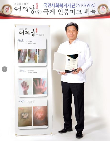 传统韩方药剂的处方改成合法化的过程,至少也需要6个月以上的长时间。在加上资金方面的过大投资,给尹钟雄代表造成了很大的困难。在这种艰难的环境中,他成功地开发出了对皮肤病有特效的再生霜,经多次研究和实验,确认生机油油对烧伤治疗有特效功能,尤其是褥疮及烧伤,在3-15日之间就有急转再生的特效功能,对如此的现象医生都不仅惊叹。(专利注册: 含由等离子体而生成的经负离子处理的天然精油以及天然提取物的复合物为有效成分的皮肤炎的预防, 改善并治疗用组成物(2019,01,18)10-1942009,解毒用药物(2018,03,22)10-1843287, 专利申请:含有植物发酵液有效成分的抗氧化用组成物用组成物(2019,05,29)10-2019-0062951((IOS9001,14001认证)。