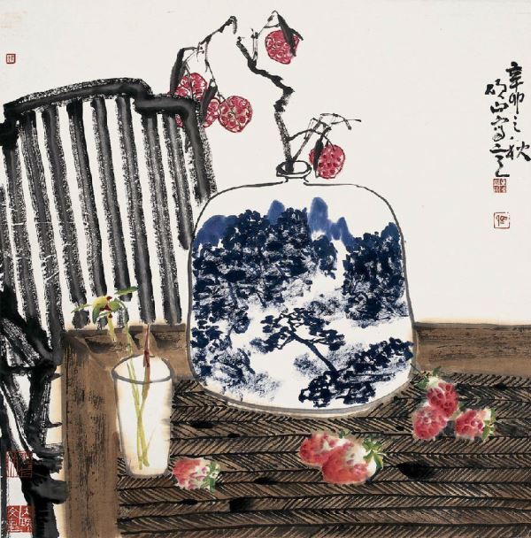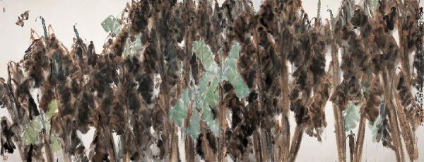可以说,在这些写意作品中,墨的运用,色的斟酌使画面在开放的形质结构中,呈现出浑然放达的风貌,而情感的体味,心绪的游走,使得笔墨与色彩融合中升华画面语境,以奔宕之势契入主题,以墨的浓重或虚淡形成画面层次,在墨象世界中与色的淡雅形成依衬,凸显出物化空间中的审美韵味。