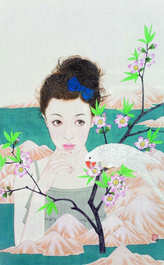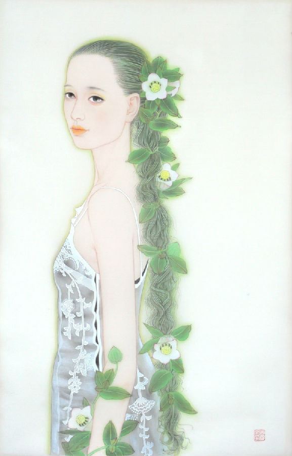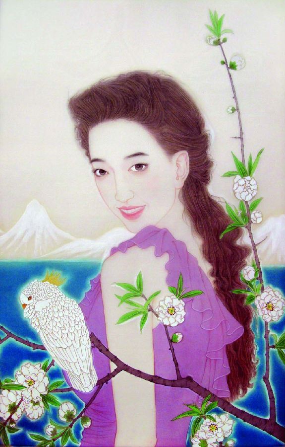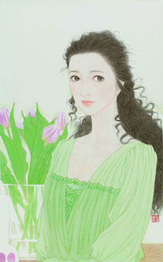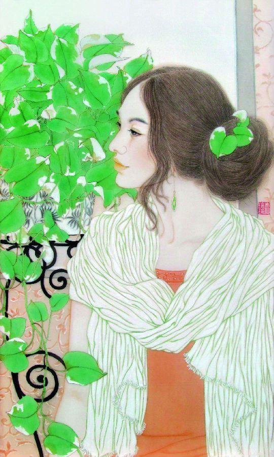 正是在这种时代背景和文化空间中,像袁玲玲这样的年轻画家开始努力,学院式的训练使她有着扎实的传统功底,而作为新时期的年轻画家,又有着鲜明的时代特征和完全与之契合的绘画体验与精神面貌。袁玲玲的绘画多取材于都市生活体验,是对生活的感受和理解,把这种感受和理解诉诸自己的画面,充满生机、青春、活力。我们从她的画中体会到的也正是这种感受。正像她这个时代,这个年龄的女孩,从心灵出发,感受生活、感受爱,在美好中体会艺术的真谛,以及对生命的关怀与张力。袁玲玲在美院读研究生这几年进步非常大,在艺术创作上已呈现出自己独特的风格与面貌;在线与形的结合上,在整体设色的把握上,在绘画的艺术性上,都有了自己明确的思考与拓展;线与形的生活化结合,使她刻画的形象更贴近于现代生活而有别于传统绘画。对于西方的研究、借鉴、吸纳,使她的画面更具有了现代绘画的意识与视觉张力,把程式化的笔墨加以修正转换,以适应新对象、新趣味的需要。笔墨语言单纯、明丽、强烈、典雅而和谐,在传统技法的基础上赋予更深层次的延展与探索。