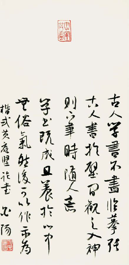 张海(中国书法家协会主席):旭宇先生是一位勤奋、高产,艺术、学术视野广阔、造诣高深、成就丰硕、在诗书两界和社会上都具有广泛影响的书法大家。《诗书杂感》是他诗情、才思的笔墨流露与迹化,是他综合学养和诗书哲思的凝练结晶,堪称是旭宇先生诗书思考和行书实践的代表作。他的行书宗法晋韵宋意,既得二王萧散、飘逸之美,又得宋代文人书家娴雅、书卷之气。同时又兼攻北碑,在其行书流美之外,又增其笔墨线质的刚健雄强和结字的自然、活泼之美。旭宇先生在担任中国书协副主席兼楷书委员会主任期间,以高度的社会责任感和艺术家的使命感,通过对中国书法的发展规律和当代楷书创作审美诉求和创作实践进行分析,创造性地提出了“今楷”理念。对包括楷书在内的各种书体的当代书法艺术化、创新创作发展起到了积极的促进作用,在书坛影响深远。