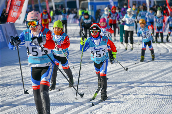 四场比赛同时鸣枪,400多名参赛者中,包括专业运动员和滑雪爱好者,既有年过七旬的老人,也有10岁左右的小学生。滑雪赛道穿越冰面、森林和公路,运动员在追逐竞速的同时,还能充分领略迷人的北国冬景。