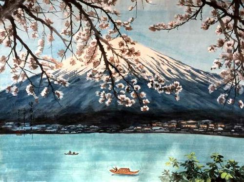 王余根国画被日中经济贸易理事(左)浅田隆司收藏