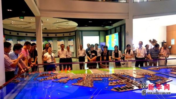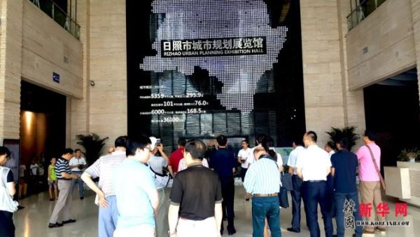 与会侨界代表及媒体负责人参观考察并采访日照市城市规划展览馆。