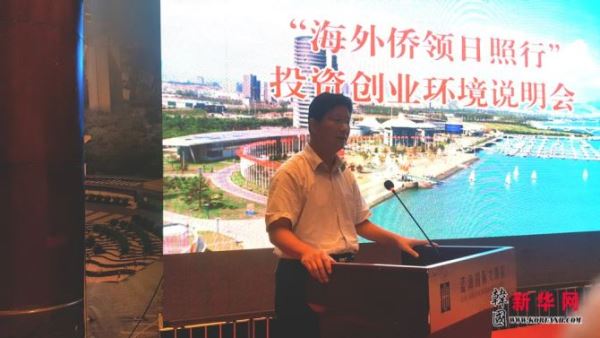 中共日照市委副书记孟庆斌接见侨界代表及华文媒体负责人一行并致欢迎词。