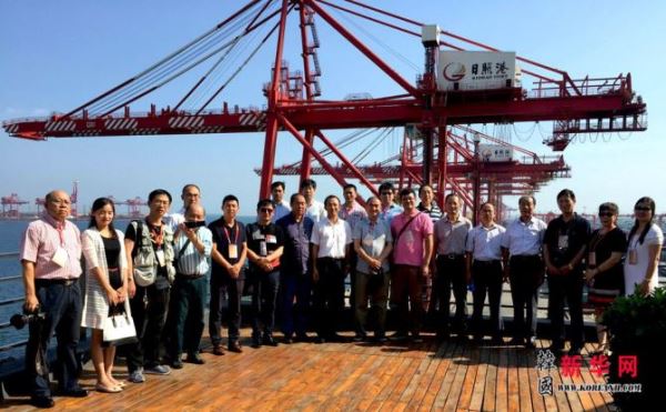 与会侨界代表及媒体负责人参观考察并采访日照市港务局码头后同日照市政府党组成员涂敬昌(前排左起第八位)共同合影留念。