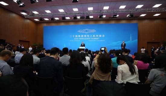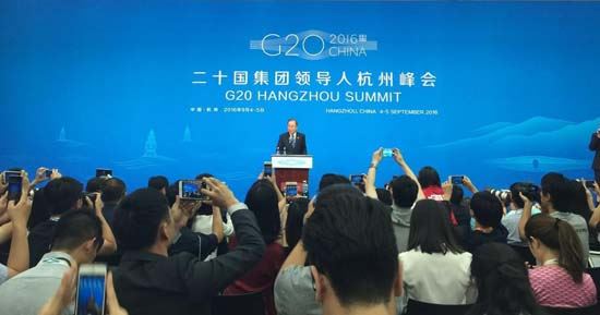 9月4日,人民日报海外网“2016中国新发现”采访团走进浙江杭州,直击正在举行的G20杭州峰会,捕捉每一个精彩瞬间。当日上午,联合国秘书长潘基文在G20新闻中心召开发布会。潘基文表示,他非常高兴有机会到中国杭州出席G20峰会,这也是他作为联合国秘书长最后一次出席G20峰会。
