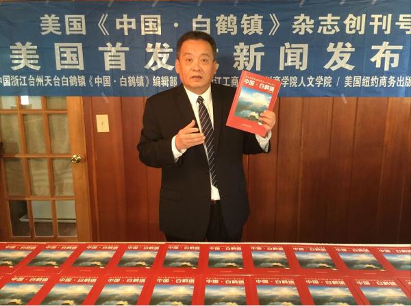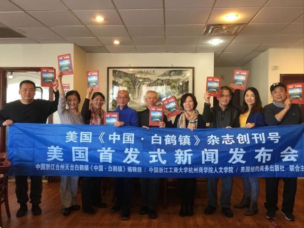 中国第一家乡镇级杂志《中国·白鹤镇》首发式和新闻发布会今天在美国康涅狄格州“中国作家之家”举行。主办方美国纽约商务出版社总编辑冰凌宣布,由中国浙江省台州市天台县白鹤镇《中国·白鹤镇》编辑部、中国浙江工商大学杭州商学院人文学院和美国纽约商务出版社联合主办的《中国·白鹤镇》杂志在美国正式创刊并首发。