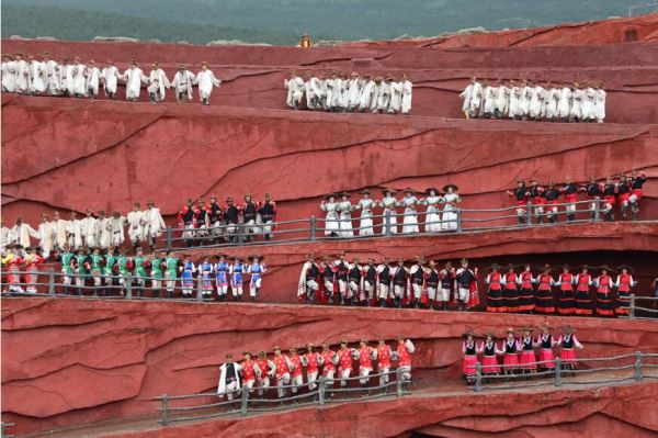 在玉龙雪山景区,华媒代表观看大型实景演出《印象丽江》 (海外网 谢明 摄)