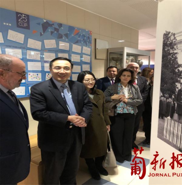 中国驻葡萄牙大使馆蔡润大使和使馆领导出席揭牌仪式,并与出席仪式的嘉宾和学校师生们兴致勃勃观看了中华人民共和国成立70周年图片展。