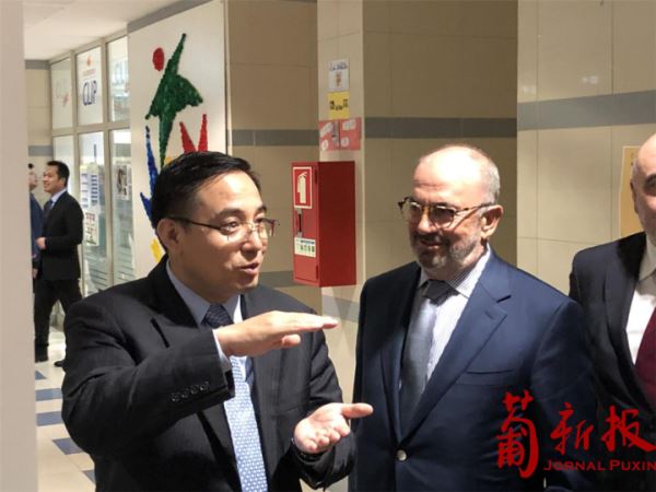 蔡大使称赞米尼奥大学是葡萄牙负有盛名的高等学府,曾率先在葡设立中文硕士专业,可谓是葡萄牙高校汉语教学的先锋,有力推动了中葡教育、语言、文化等领域的交流合作。米尼奥大学孔子学院是葡萄牙第一所孔子学院,成立14年来取得积极成果,为葡萄牙朋友学习汉语、了解中国文化提供了重要平台。