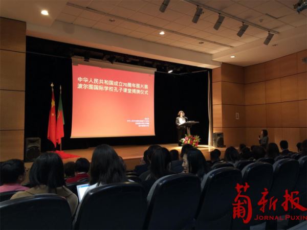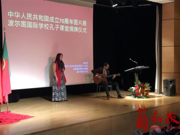 【葡新报讯 摄影/李伟龙】2019年11月22日由中国驻葡萄牙大使馆,米尼奥大学孔子学院和波尔图国际学校联合主办的“中华人民共和国成立70周年图片展暨孔子课堂揭牌仪式”,在波尔图国际学校隆重举行。