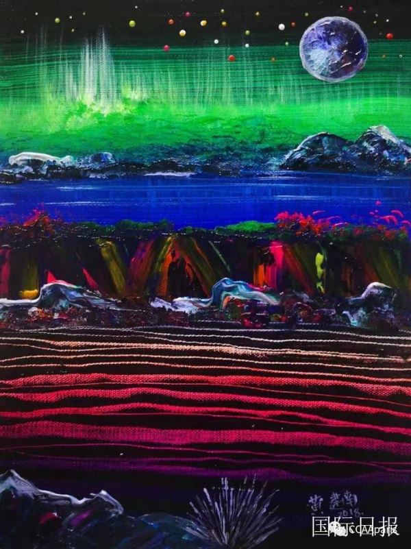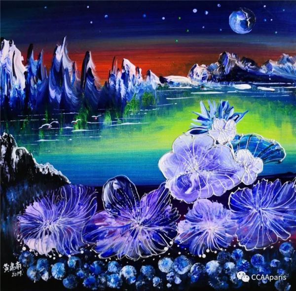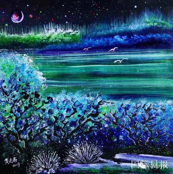 图为黄建南日前为“爱的启蒙”儿童美育创新公益项目——2019-lan 慈善私宴捐赠的《梦之花》,现场拍得80万元,为祖国儿童的艺术公益教育献上一份爱心。