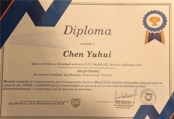 实际上,拉斯佩尔迪赛斯市政府当天共向陈玉辉颁发了3个荣誉证书,分别是“慈善家”、“优秀市民”及“杰出企业家”,与其交谈中,我也逐渐了解到这三个奖项背后的意义。