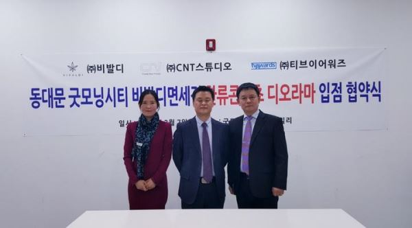 东大门VIVALDI 免税店在仪式上也向中国同胞支援中心的朴玉善理事长 (박옥선 이사장)(左一)捐赠了10000个口罩。
