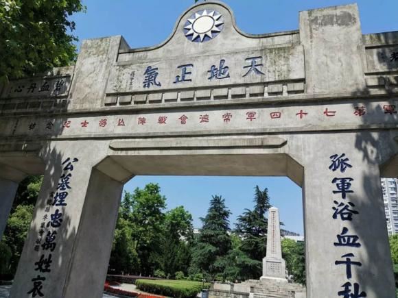进常德城后,因为当年战场的遗迹已难以找寻,我们径直奔往当年常德会战结束后74军军长王耀武将军主持建造的烈士公墓,公墓的正面是一座高大的三门纪念牌坊,正门上方是王耀武所题“常德会战阵亡将士纪念坊”横匾,正中是蒋介石所题“天地正气”,左侧为陈诚所题“碧血丹心”,右侧为白崇禧所题“旗常炳耀”。背面及另一纪念塔也有众多大佬题字。一座纪念牌坊,汇集了当时众多重量级人物的题字,可见此役在当时政府和国人心中的地位。