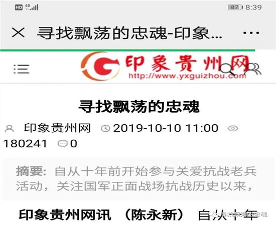 十月十日,拙文被关爱老兵的同道中人传至《印象贵州网》后,几乎产生了核裂变式的扩散。国内重量级的今日头条、网易当天转发。尤为令人感动的是:一向以庄重著称的《人民日报》新媒体平台人民号也在当天全文转载。此后几天又有十八家国内知名网站纷纷转发,台湾《海峡两岸》杂志也以十一页的篇幅全文刊登。