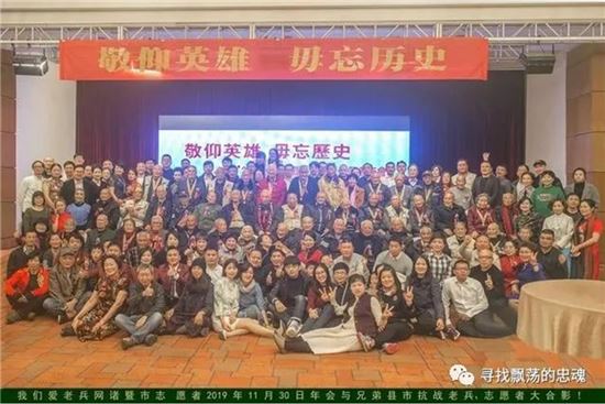 我们诸暨的热心志愿者团队于十一月三十日举行了题为“敬仰英烈,毋忘历史”的大型活动,邀请了浙江地区44位老兵参加,平均年龄九十五岁,我提供了经费支持。由于大多都曾见过,老兵见了我拉着手非常亲热。主办者请我上台讲话,我本从无抛头露面习惯,面对一众老兵殷切的眼神,我无法推托,上台讲了三句话。