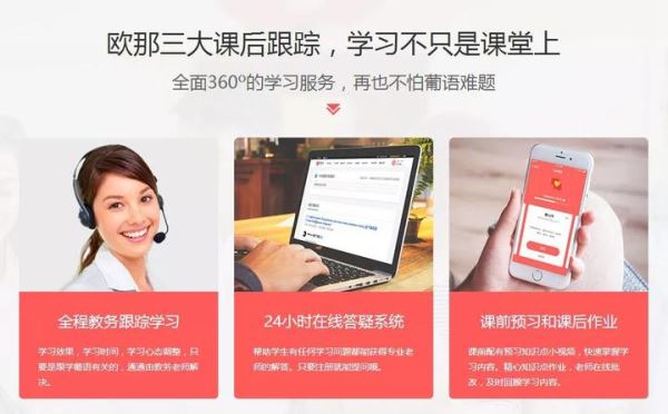 欧那强调因材施教私人定制,针对学员的不同能力与需求,设计适合每个学员的葡语培训课程:葡语速成班,30天直达基础交流水平、看懂商务邮件,助你完美应对客户;对标欧标的葡语班,优质中外教老师为你梳理语法知识点,助你串联葡语知识掌握标准葡语。